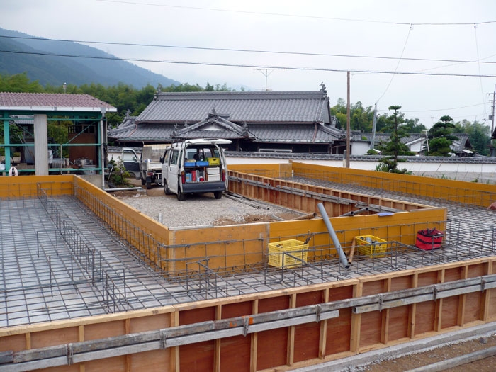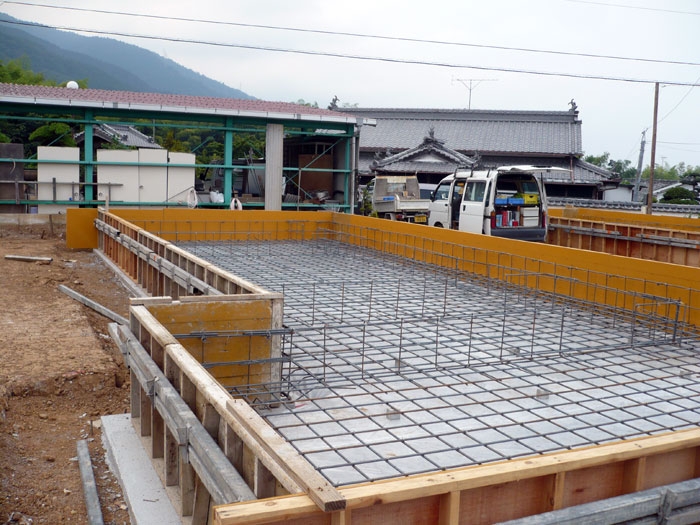 - 建物の位置決めをする地縄張りからスタート、土工事、基礎工事へと進みます。