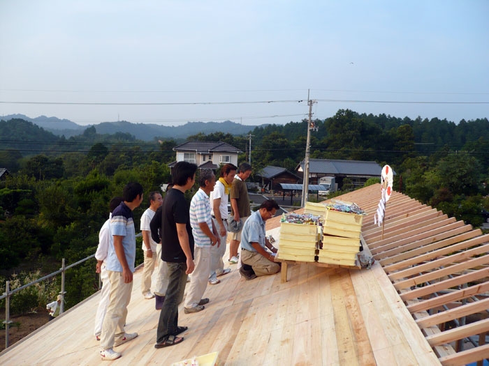 - 棟木を上げる時に無事に完成をすることを祈願して行うのが上棟式です。
